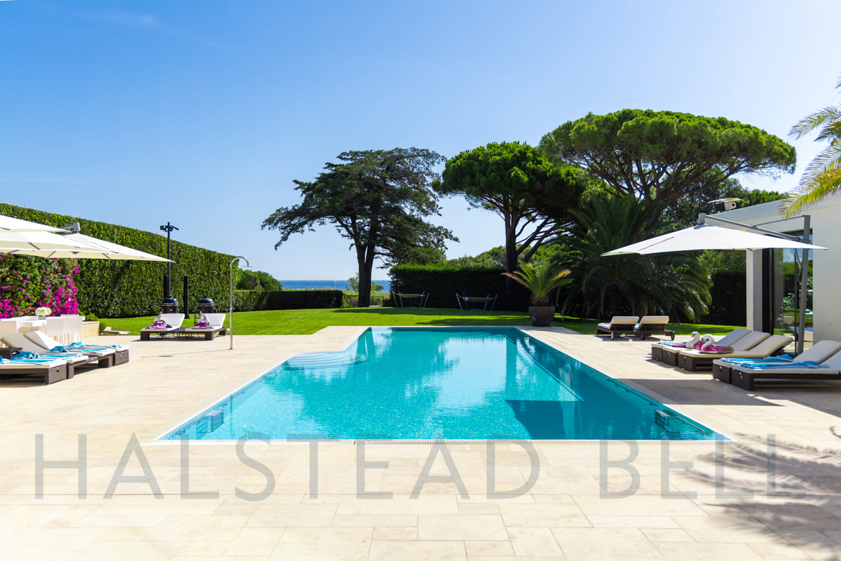 The modern villa in Pampelonne is extremely well maintained and is sold with everything inside and out, so ready for immediate occupancy. The house is a leader in technology and the swimming pool is a beautiful piece of engineering in itself.