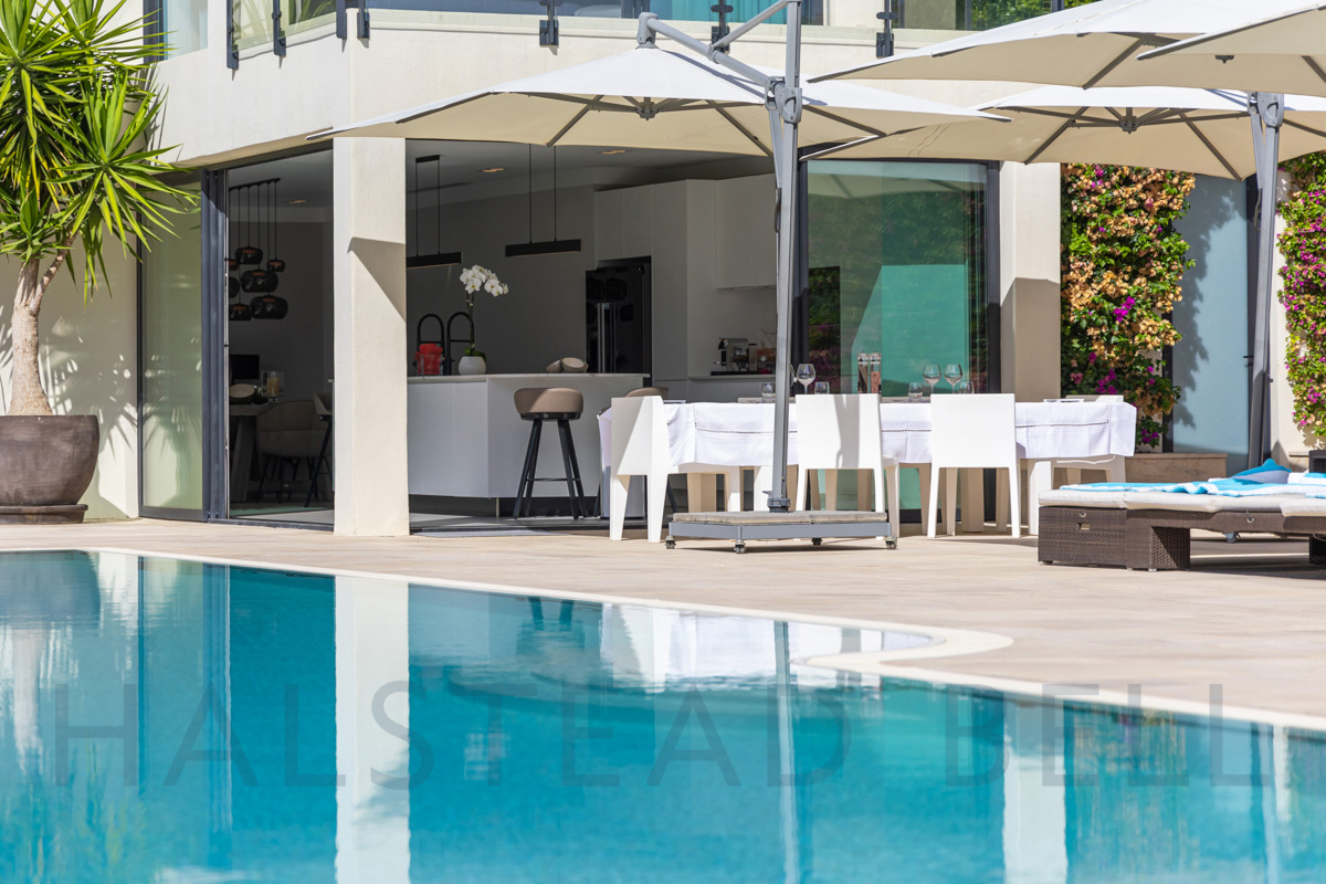 An amazing 7 bedroom villa that is exceptional in many ways… Location, views, amenities and technology. The property is just a very short walk to the beach and Club 55, on level grounds with ample accommodation, a lovely flat garden, a large swimming pool and large terraces.