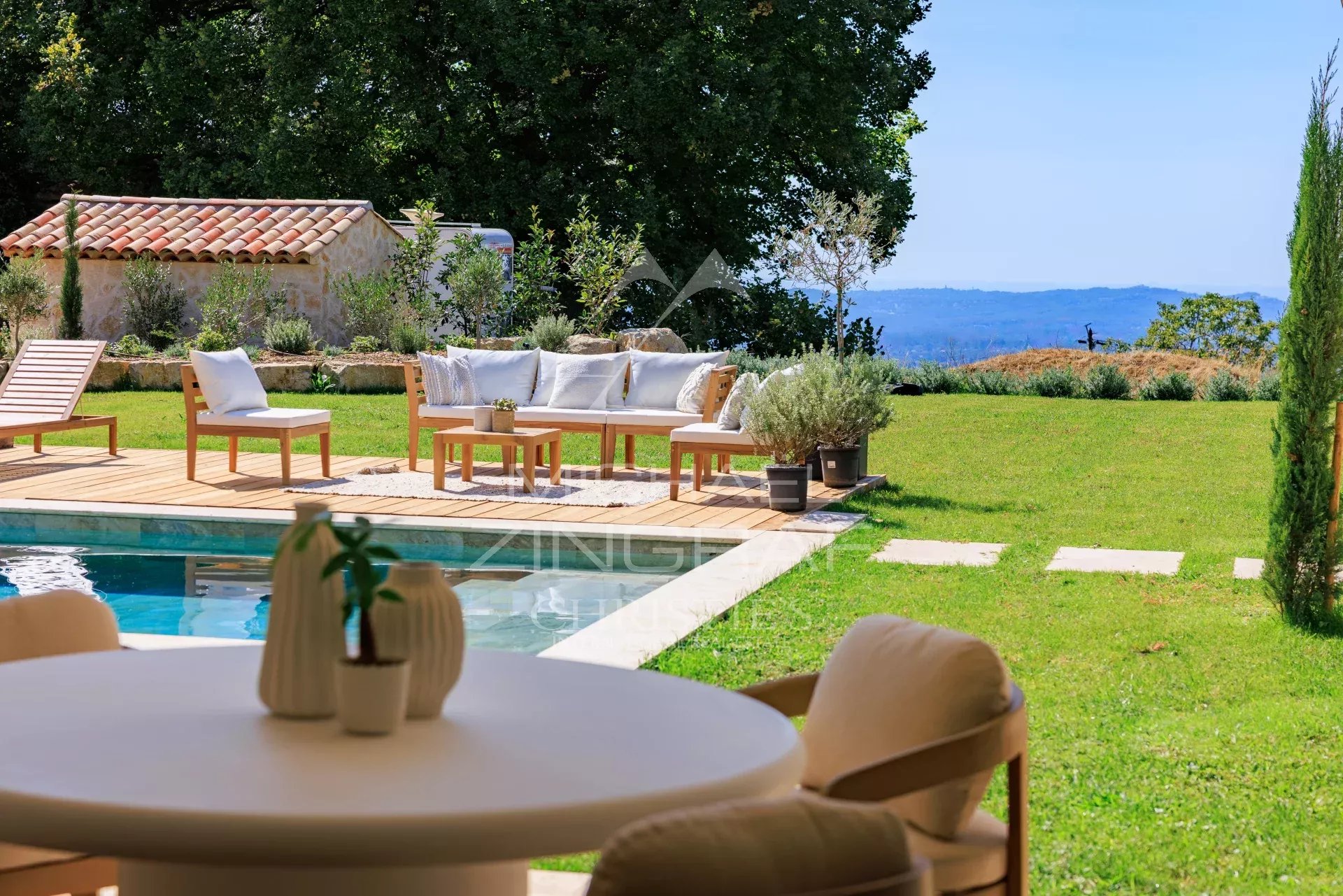 Discover this contemporary villa in the heart of the exclusive Virettes neighborhood, a true gem combining refined modernity and Provençal authenticity with its exposed stones. Recently built, this property offers a breathtaking panoramic view that encompasses both the sea and the surrounding countryside.