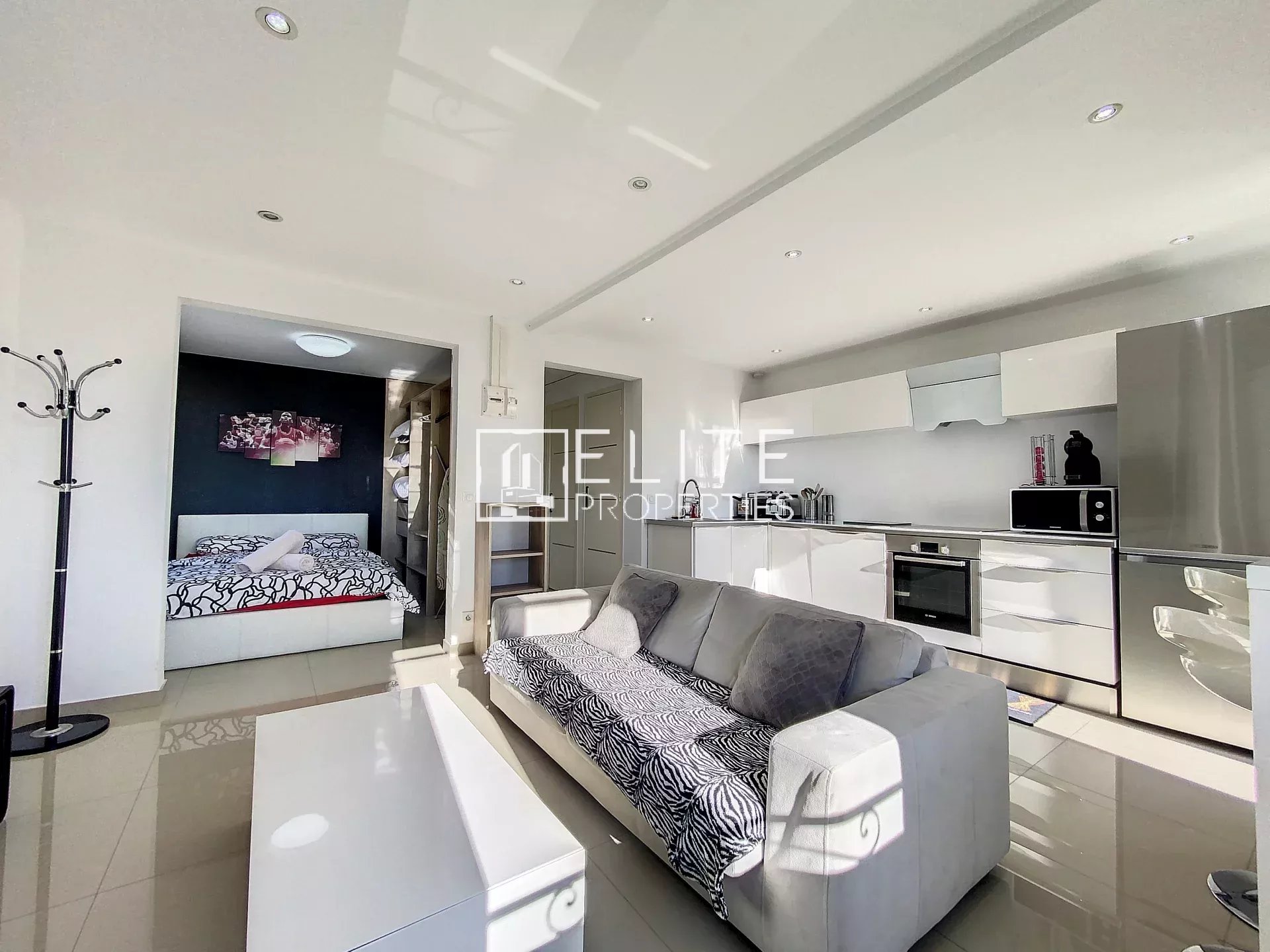 VENCE: In a small condominium of only 4 lots, this beautiful 2-room apartment of 33.1m², completely renovated with parking and superb panoramic sea view.