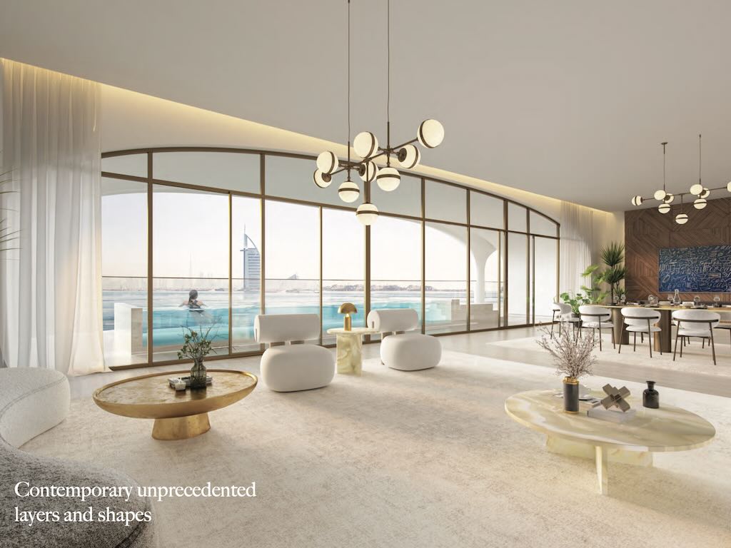Its architecture is soft and organic, inspired by nature, with subtle plays of light and lush greenery that create a true sense of calm. Every apartment is flooded with natural light and designed to fully open up to the outdoors, with expansive terraces offering breathtaking views of the Persian Gulf, the Burj Al Arab, Dubai’s skyline, and Palm Jumeirah. Each interior space combines contemporary elegance with functionality, featuring high-end finishes, fully equipped kitchens, premium materials, and meticulous attention to every detail.