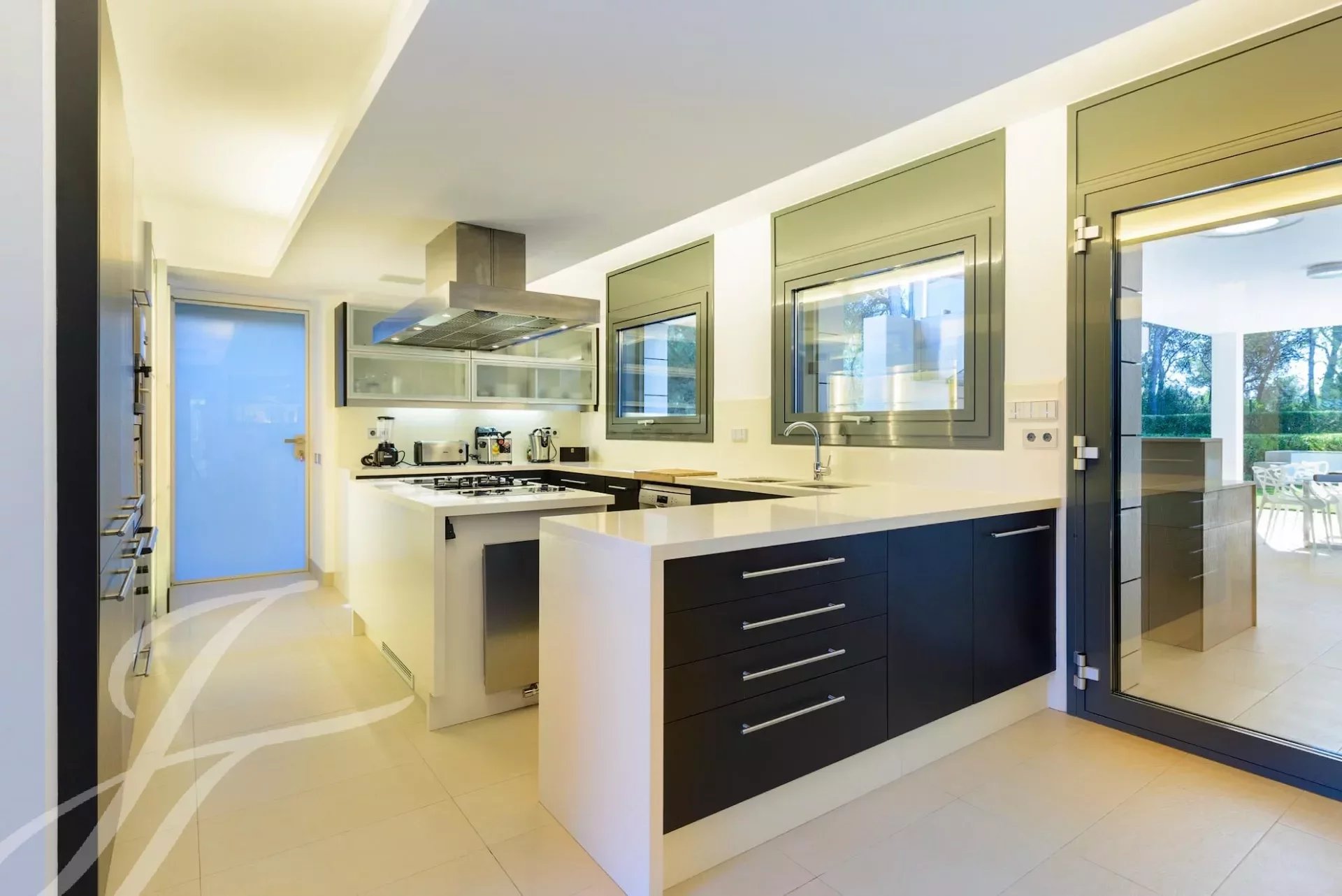 John Taylor presents this exclusive contemporary style villa very well maintained and with lots of natural light, located on the east coast of the island and just a few minutes walk from the beach of Es Canar.
