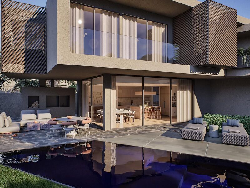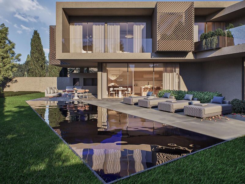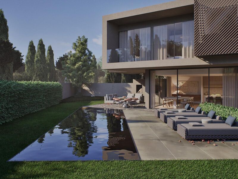 Luxurious 4 Bedroom Villa with Private Garden and Pool in Birre, Cascais. Detached villa of grandiose south-facing areas, located in one of the most prestigious and desired areas of the country – close to all kinds of experiences that the villa has to offer, such as golf courses, equestrian centres, tennis clubs, surf schools, football school and of course the Cascais Marina. Designed and built with the best and most up-to-date construction materials, designed to live in full harmony between the modern and nature. The villa is part of a new subdivision in Birre, with a plot of land of 684sqm with a total construction area of 547sqm. It stands out for its generous floor space, which covers a total of 260sqm in the basement, 140sqm on the ground floor and 147sqm on the 1st floor, offering a wide range of large and functional rooms. Basement With a floor area of 260sqm, the basement is a true centre of comfort and leisure of the villa. The closed garage has enough space for three cars, ensuring protection and ease of access. The laundry room is ideal for household chores, while the storage room/machine room provides the necessary space for storage of equipment and systems in the house. The wine cellar offers the perfect environment for wine lovers, being a place of quality conservation for the bottles. The storage hall provides even more space for organisation. The guest bathroom serves the basement with comfort and practicality. The 32sqm cinema room is ideal for moments of entertainment with family or friends, offering a dedicated space to project films or enjoy moments of leisure. The 82sqm multipurpose room is versatile, and can be used for various purposes, such as a games area, gym or other type of activity. Floor Zero The ground floor, with a floor area of 140sqm, is the social heart of the house. The dining room and kitchen, with 40sqm, is a large and inviting space, perfect for meals and moments with family or friends. The support pantry, with 4.31sqm, offers practicality to support kitchen activities. The guest bathroom serves this floor, ensuring comfort and privacy. The 22sqm wardrobe/storage/reading space is a cosy environment to store personal items and relax in a reading corner. The entrance hall, also with 22sqm, is a large and elegant space that creates a good first impression. The living room, with 59sqm, is the ideal place for moments of leisure and relaxation, with a sophisticated and comfortable atmosphere. Floor 1 The 1st floor, with 147sqm of floor space, is dedicated to rest, relaxation and comfort for residents. The 38sqm master suite with a generous walk-in closet offers a true luxury experience, complemented by a large 15sqm en-suite bathroom. In addition, the suite has access to a 22sqm private terrace, providing a private outdoor space for relaxation. Suites 2 and 3 both have 17sqm and suite 4, with 22sqm, also has a closet. The 23sqm bedroom hall is equipped with large wardrobes, which support suites 2 and 3. The balconies, one measuring 6sqm in suite 2 and the other measuring 11sqm in suites 3 and 4, offer outdoor areas to enjoy the outdoors and relax. Together, this villa offers an intelligent distribution of space, with very large and well-designed areas, ideal for families looking for comfort, luxury and functionality. The exterior is also a special place in this unique villa, again due to its large dimensions, the pool in strong shades of blue that contrasts with the timeless neutrals of the interior but above all because it faces south and is therefore exposed to the sun practically all day. The concept of this villa is based on the appreciation of architecture as an art form, integrating decorative elements of origin that reinforce the identity of the space. In the entrance hall, the plaster panels recover the tradition of an architecture intrinsically linked to artistic expression. The choice of timeless materials ensures a lasting aesthetic, while the strong blue pool acts as a subtle statement, which does not compete with the architectural presence of the house. Natural stones introduce a sense of nobility and sophistication, and the careful selection of elements from different periods of architecture and design allows for fluid integration, ensuring that the whole remains cohesive and timeless.