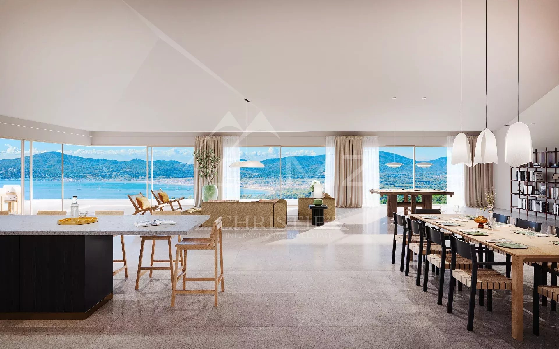 Outside, a carefully designed landscaped garden surrounds a superb swimming pool, providing an idyllic setting for relaxation. The whole property opens onto breathtaking panoramic views combining sea and hills, for moments of unparalleled serenity.