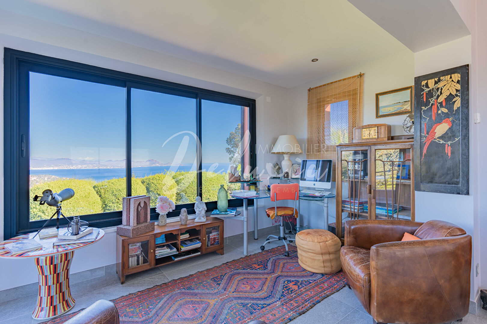The two marine panoramas from the villa are simply breathtaking. On one side, the bay of Saint-Raphaël spreads majestically, framed by snow-capped mountains in the background during winter months. On the other, the Gulf of Saint-Tropez reveals itself in all its splendor, creating a unique and serene atmosphere.