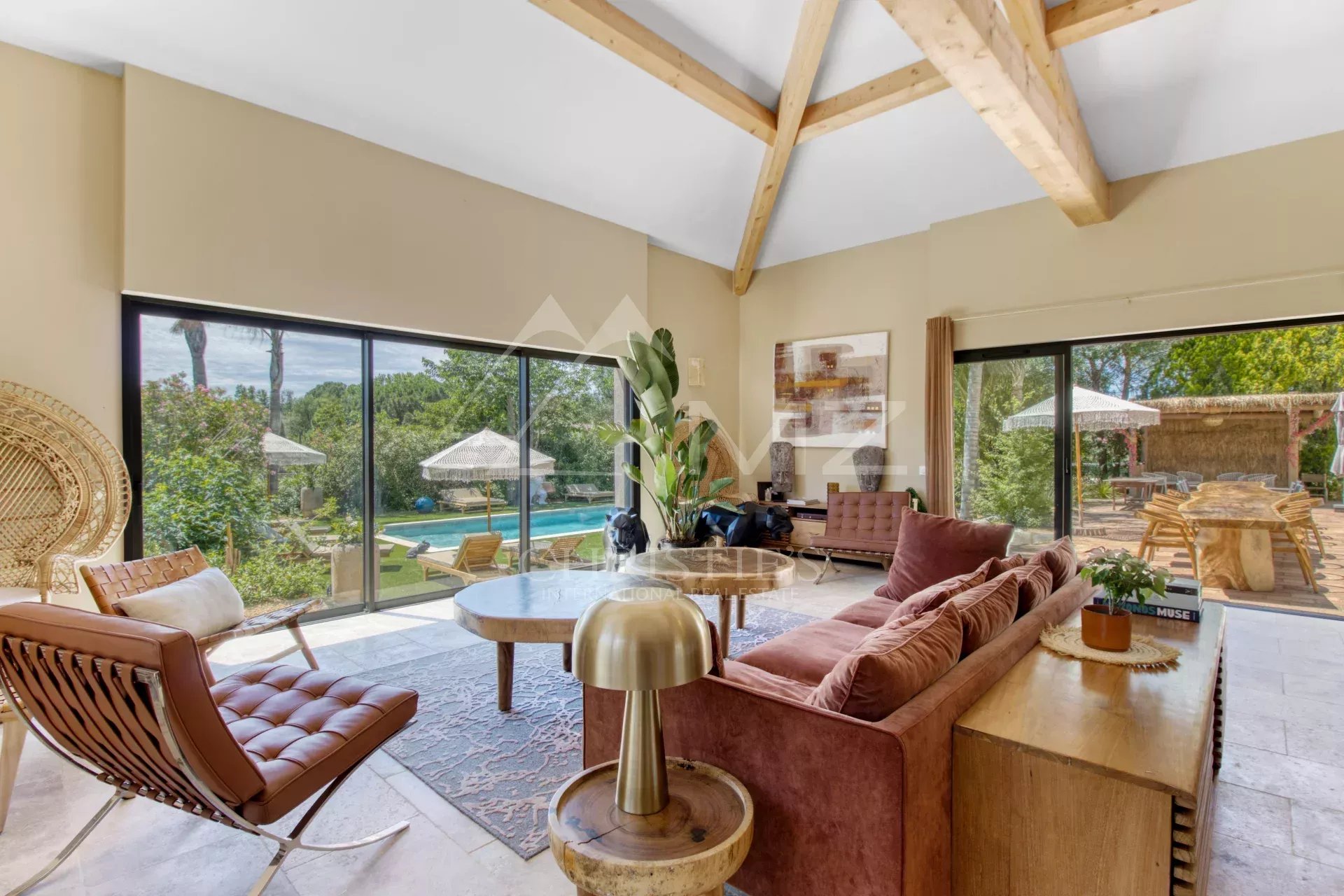 Built on 2 levels, this property boasts a spacious living area of approx. 100m2, comprising an open-plan kitchen, living room and dining room overlooking the terrace and swimming pool.