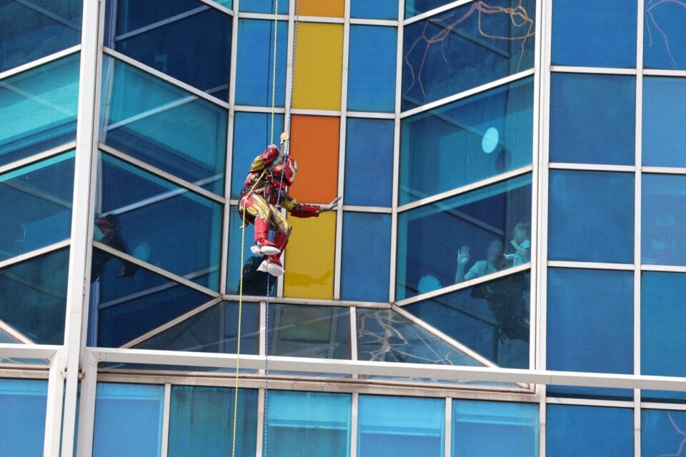 Dus hoewel Batman, Spiderman en Superman fictieve helden zijn, hebben de glazenwassers van het Lenval Children’s Hospital laten zien dat heldendom kan voortkomen uit iedereen die bereid is om licht en geluk te brengen aan anderen, met of zonder cape.