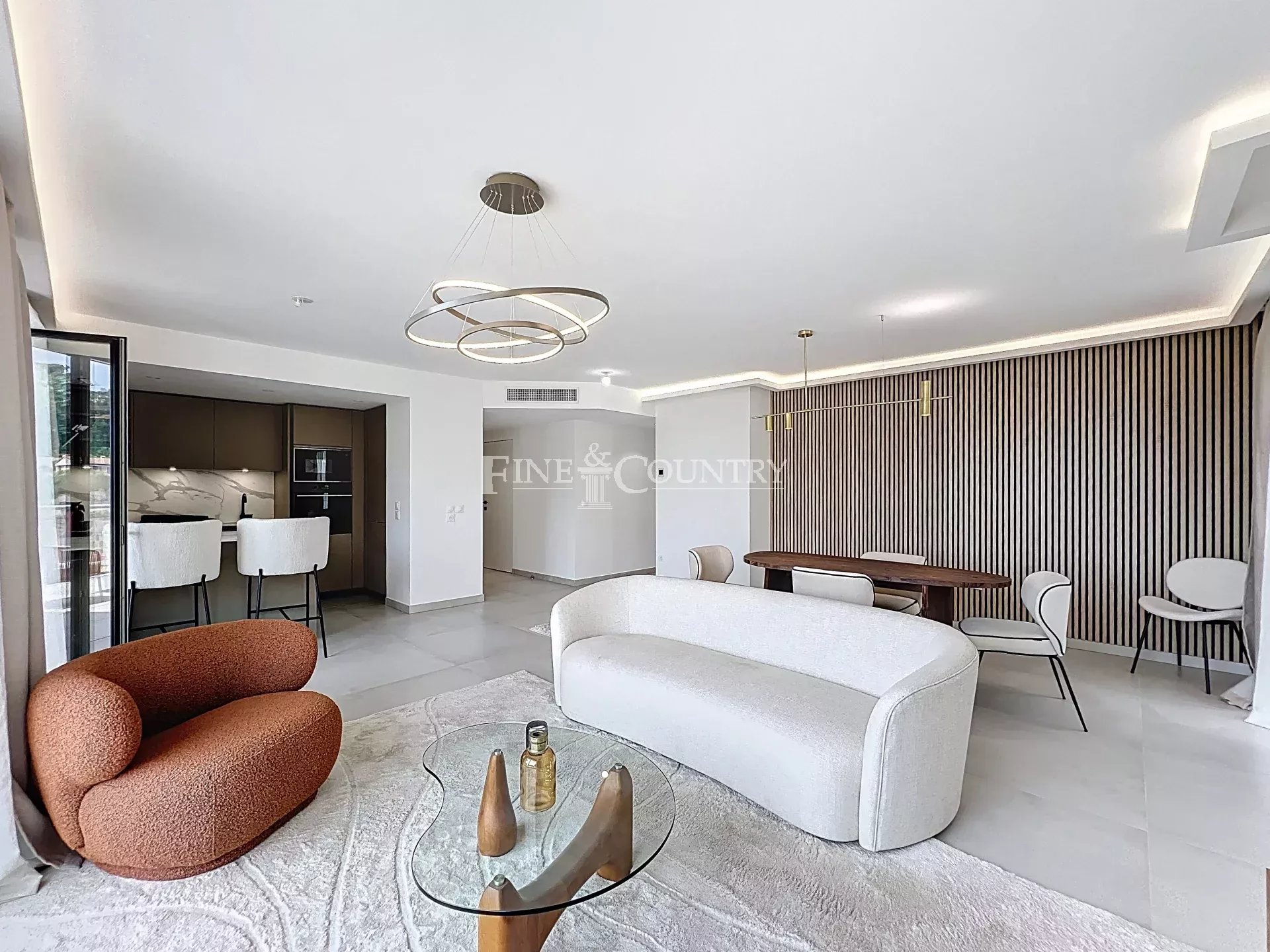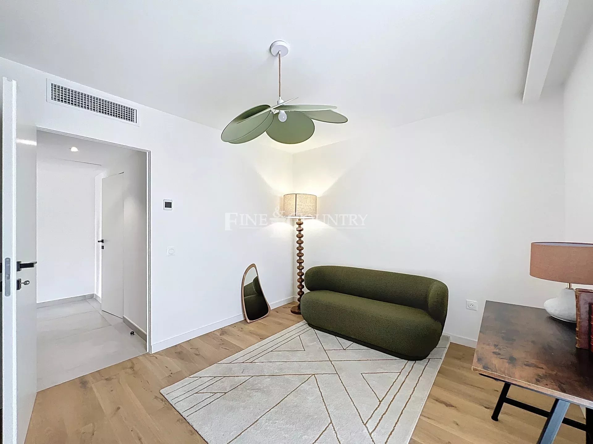 Dit vierkamerappartement, gelegen in een nieuwe en intieme residentie, genesteld in een weelderig aangelegd park, biedt een adembenemend uitzicht over de baai van Cannes en de Lérins-eilanden. In absolute rust biedt het ruime woonruimtes die uitkomen op een groot terras op het zuiden, in een veilige en prestigieuze omgeving.