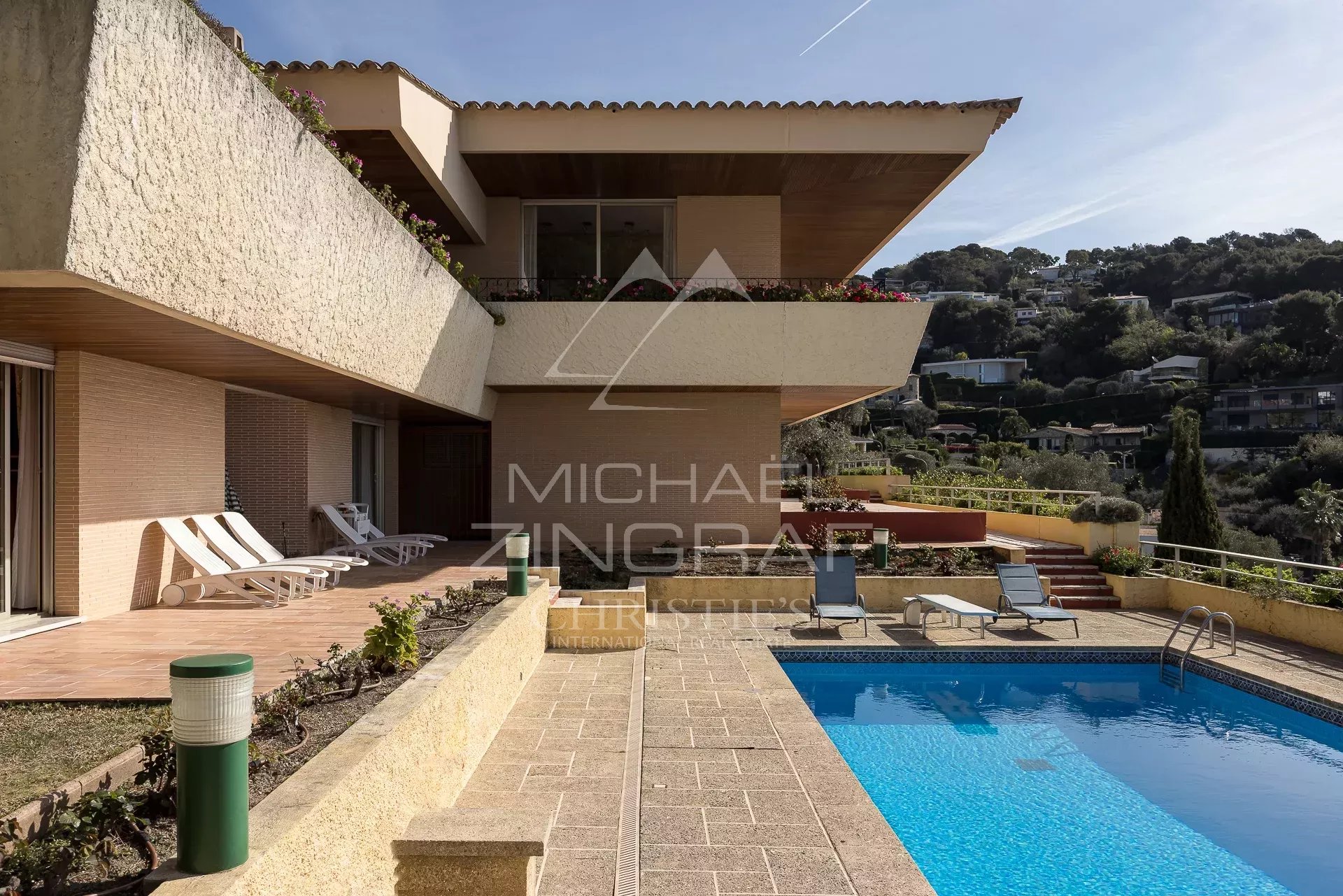 Deze villa ligt in het meest gewilde privédomein in Villefranche-sur-Mer en valt op door het eigentijdse ontwerp en de royale volumes. Ontworpen in de jaren 1970 door een gerenommeerde architect, behoudt het een opvallend gevoel van moderniteit.