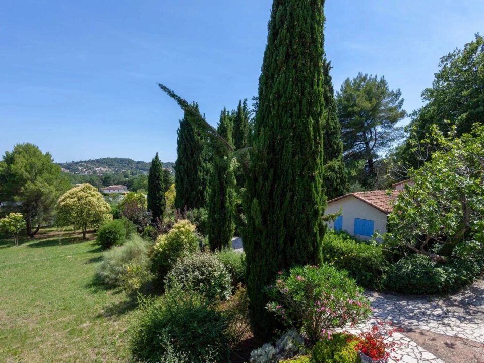 Chateauneuf-de-Grasse: woonwijk vlakbij Valbonne, prachtige villa met potentieel, op het zuiden gelegen, in absolute rust, bestaande uit: inkomhal, woonkamer, eetkamer, ingerichte keuken, 4 slaapkamers en 2 badkamers. Grond van 3.500 m² met bouwvergunning voor een zwembad. In het bijgebouw, garage van 80 m², mogelijkheid tot aanzienlijke uitbreiding!.