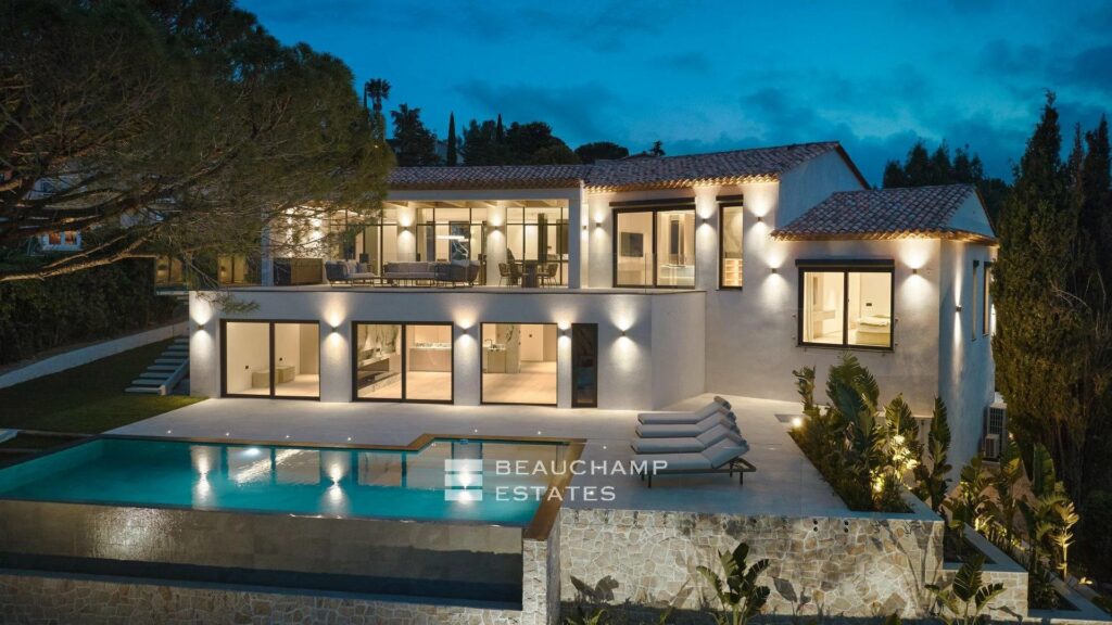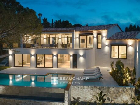 Gelegen in de residentiële wijk Super-Cannes op een perceel van 2057 m², is deze architectonische villa een high-end project, met mooie afwerkingen, domotica en grote, goed ingerichte en comfortabele ruimtes.