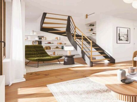 VERBAASD ZIJN ALS JE THUISKOMT, IS DE BELOFTE VAN EEN MOOIE VERRASSING DIE ELKE DAG WORDT VERNIEUWD. Dit dagelijkse geluk is het resultaat van een vereiste van de architecten: om de rust van de buitenwijken van uw nieuwe adres te bevorderen en deze gedurende de hele reis uit te breiden. Van de gangen tot de overlopen, de harmonie van kleuren en materialen, de nauwgezetheid in de keuze van ontwerp en decoratie, alles is een genot voor de zintuigen.