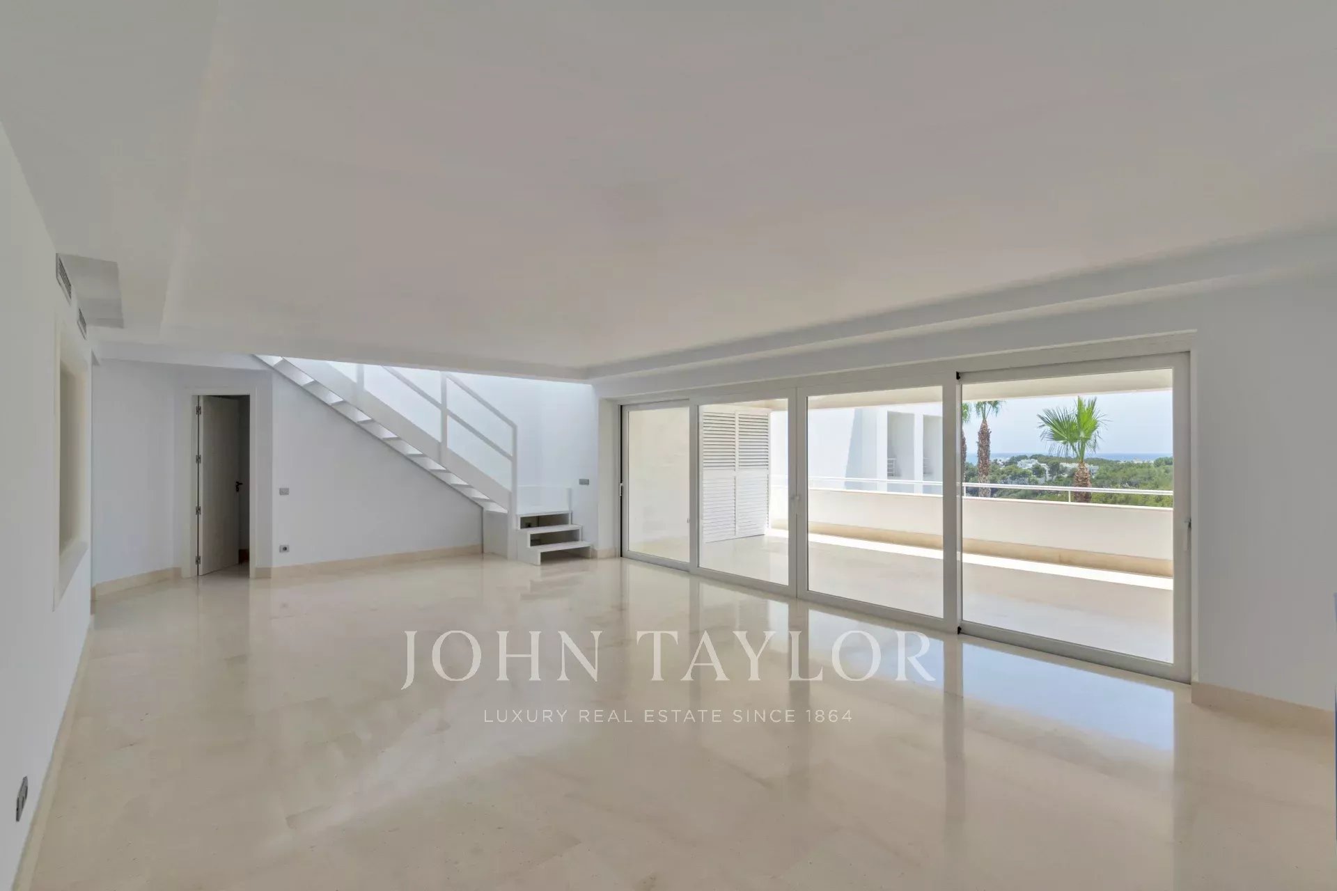Exclusief penthouse van 254 m² met die ruimte, comfort en een werkelijk spectaculair uitzicht op zee. De woning beschikt over vier slaapkamers, drie complete badkamers, een open keuken die grens aan een ruime woon-/eetkamer en een groot hoofdterras van meer dan 40 m² met open zeezicht – perfect om te ontspannen of van het buitenleven te genieten.