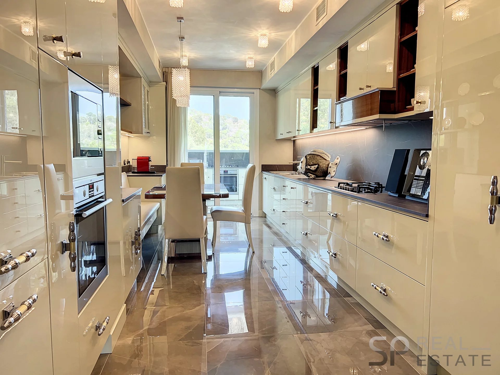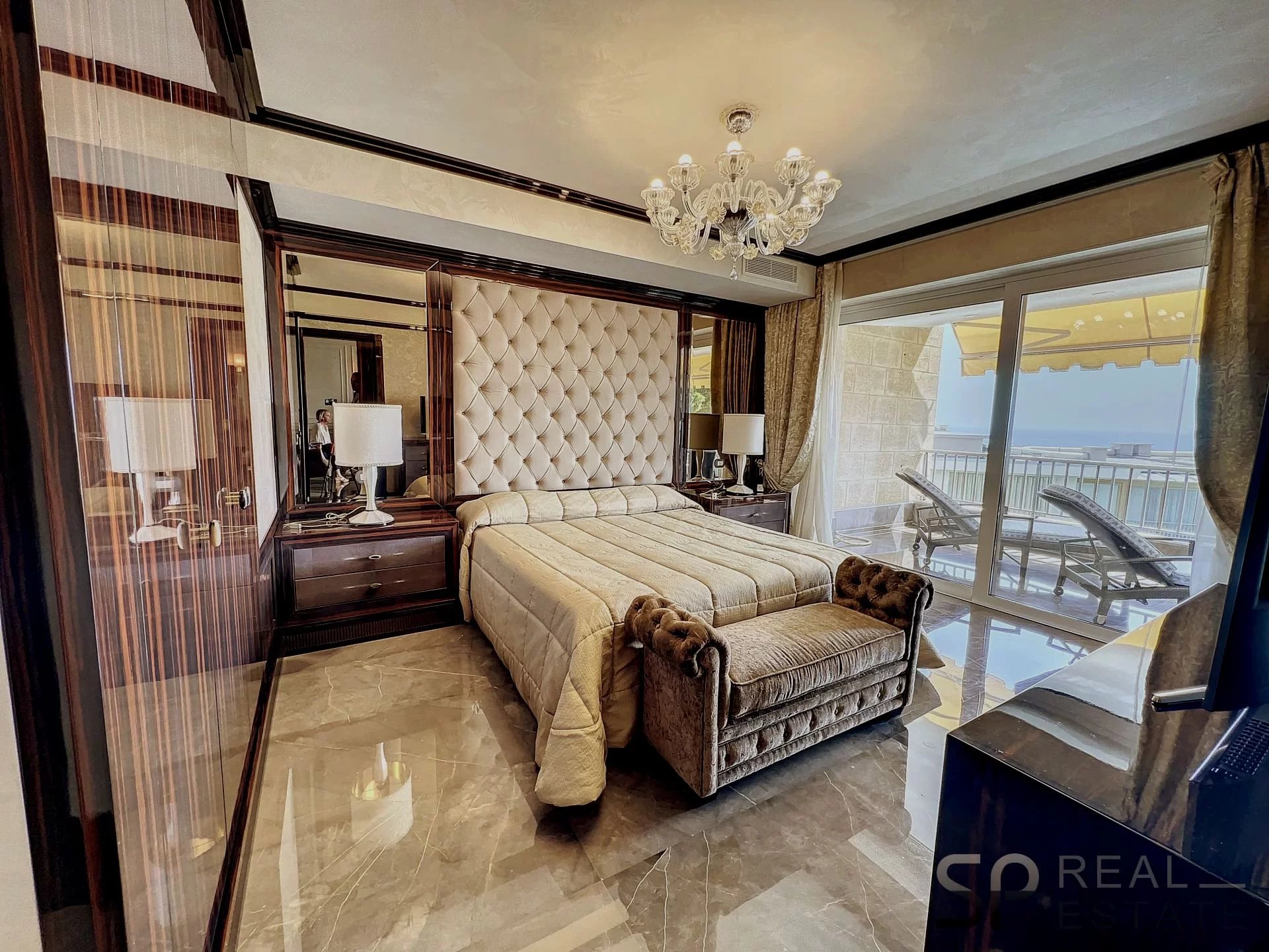 Dit hoekappartement van circa 162 m² is gerenoveerd met de beste materialen zoals ebbenhout met verguldsel, haaienleer, zeldzaam marmer, Muranoglas, stucwerkwanden en gouden beslag.