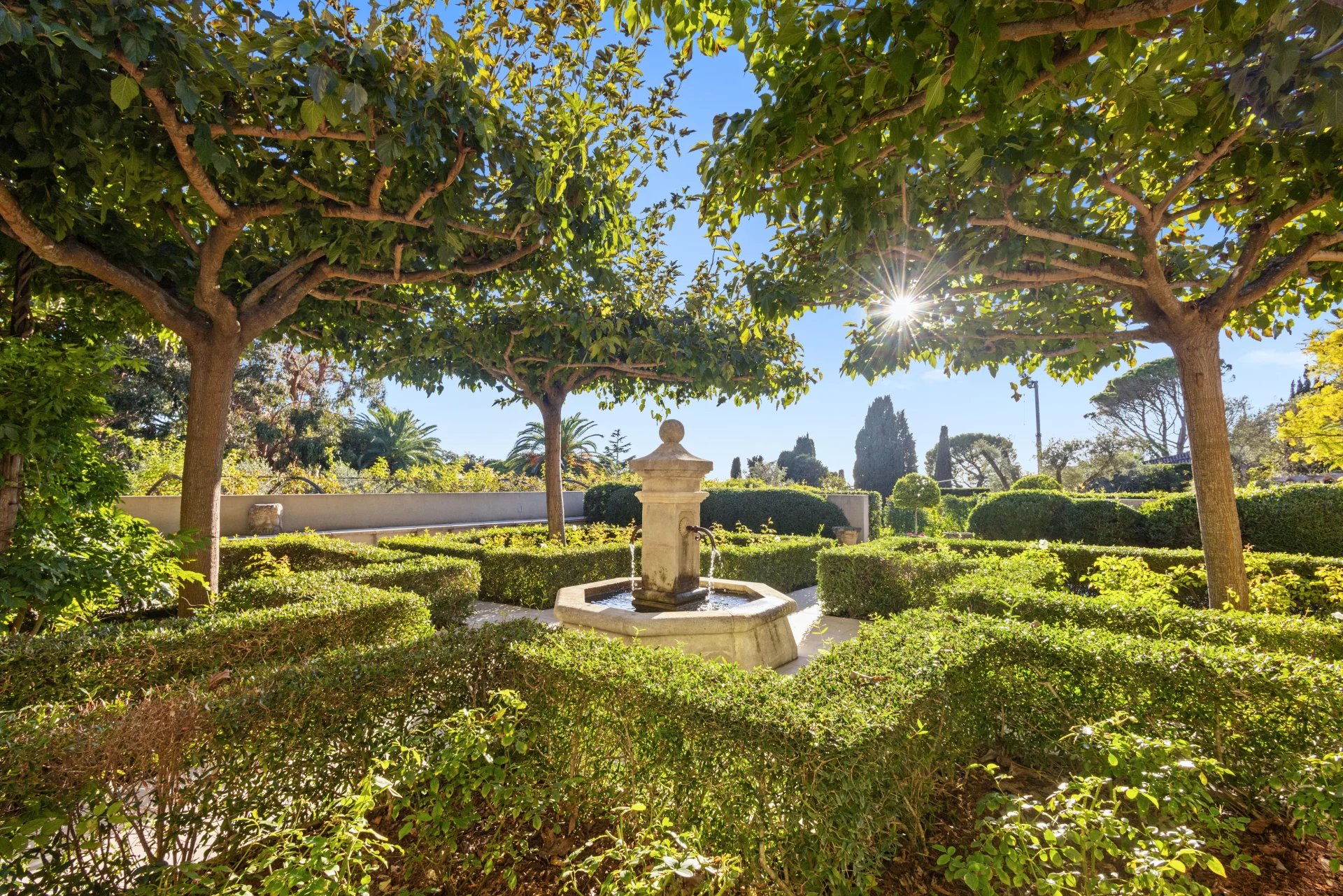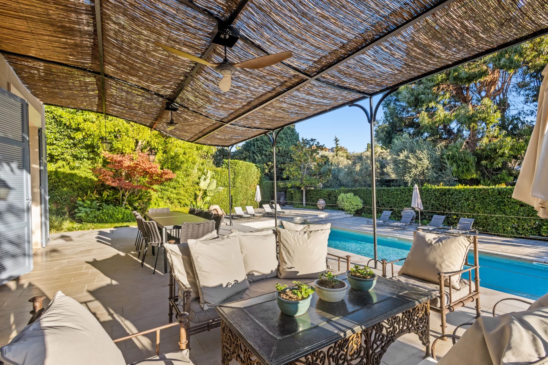 Buitenvoorzieningen zijn onder andere een verwarmd zwembad, een volledig uitgeruste fitnessruimte, een sauna, een stoombad, een thuisbioscoop en een tennisbaan. De uitgestrekte landschapstuin is versierd met mediterrane flora en eeuwenoude olijfbomen die hun eigen olijfolie produceren. Een onafhankelijk gastenverblijf draagt bij aan de aantrekkingskracht van deze typische villa aan de Franse Rivièra.