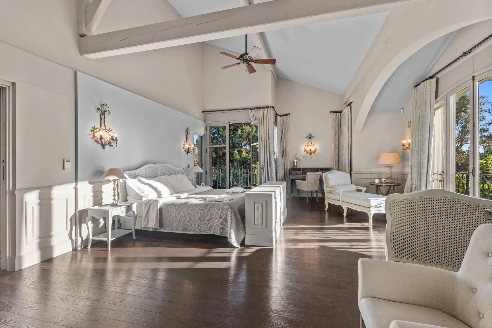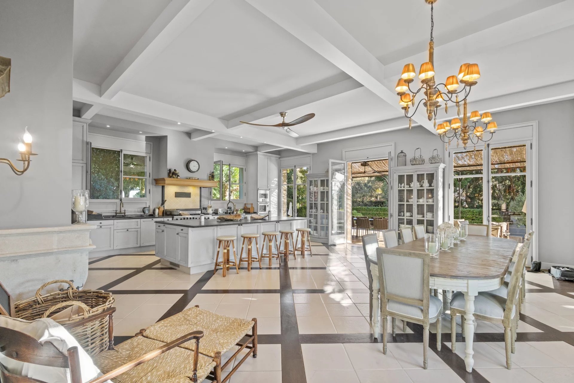 Deze luxe villa aan de westkant van Cap d’Antibes biedt rust vlakbij zee en zandstranden. Het pand combineert vakkundig historische elementen met moderne kenmerken, waarvan sommige delen twee eeuwen oud zijn. Op de begane grond bevinden zich een gezellige woonkamer met open haard, een eethoek, een keuken, een bibliotheek en een en-suite slaapkamer. Op de bovenverdieping heeft de hoofdslaapkamer een en-suite badkamer en kleedkamer, die uitkomt op een terras, samen met vier andere en-suite slaapkamers.