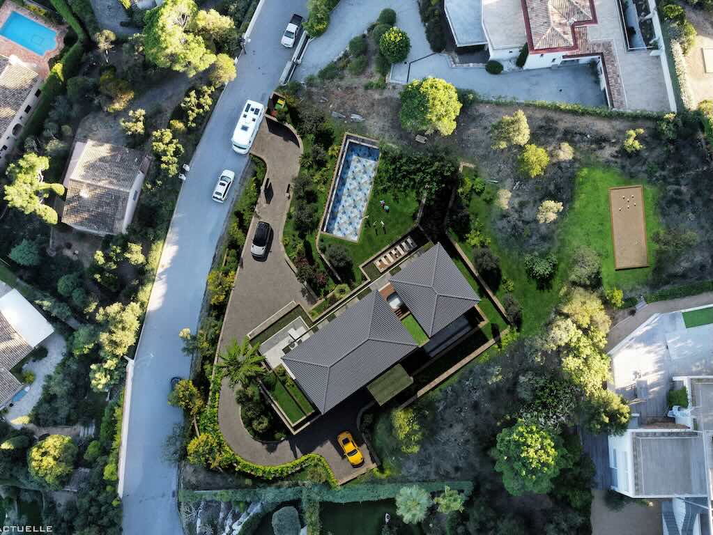– Górne piętro: Dostępne windą, z trzema dodatkowymi sypialniami z łazienkami otaczającymi patio na świeżym powietrzu z jacuzzi, idealne do podziwiania panoramicznych widoków.