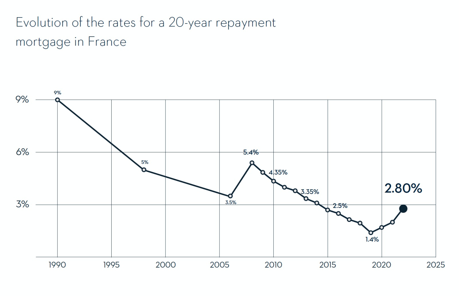France has not escaped the rise of rates over the last few months. Yet these increases have not been to the level seen in countries like the UK. In France, as the rates were extremely low to begin with, the recent rise puts them back in the realm of normality. The Tec 10 index, which ultimately dictates how much the French government pays to borrow money over 10 years in France, fell during the summer 2019 to its lowest ever level of -0.5% and now stands at 2.76% after an increase in 2022.